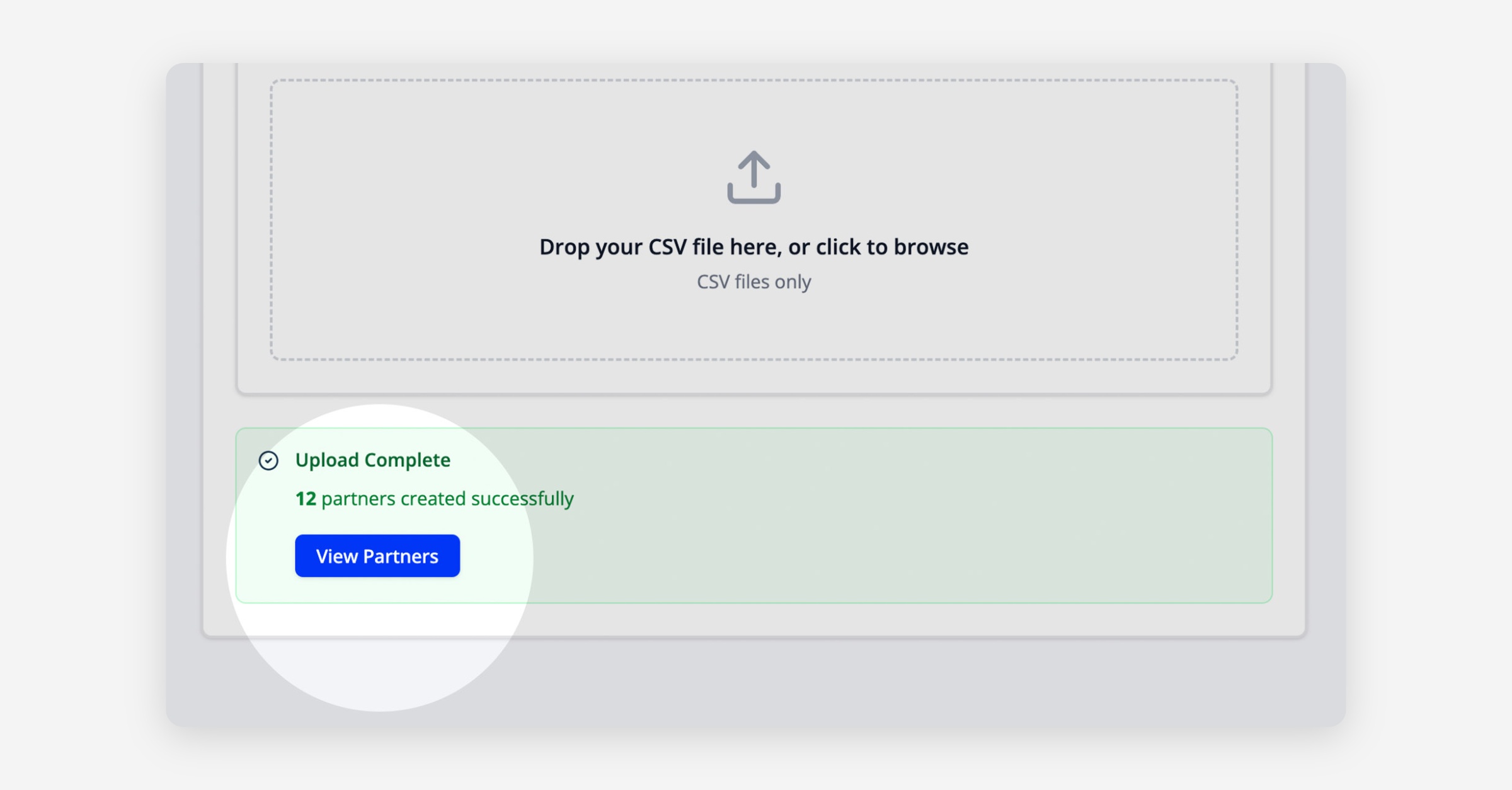 Click the Download CSV Template button and correctly input your partners data.