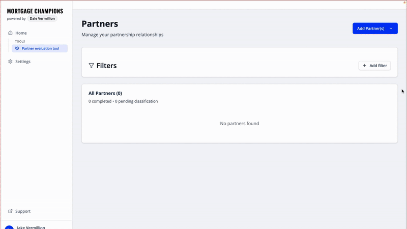 Start by selecting Bulk Upload from the Add Partner(s) button in the top right hand corner.